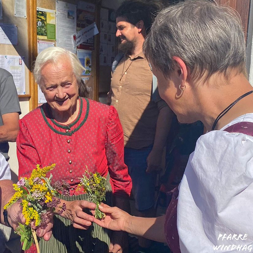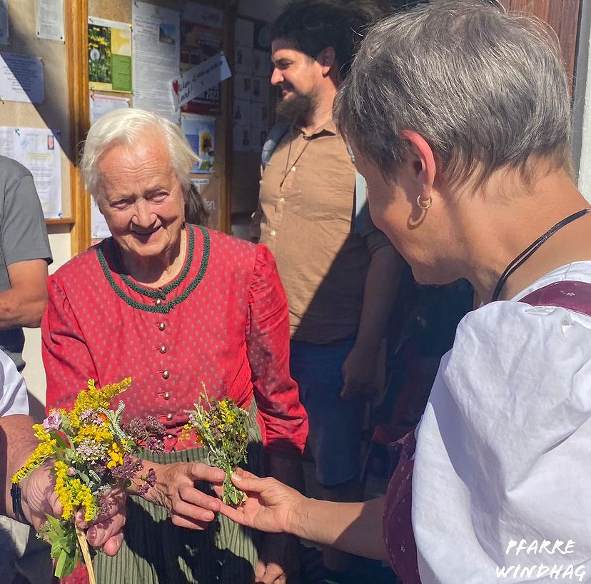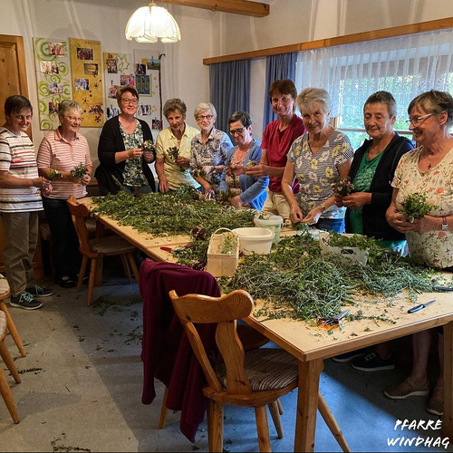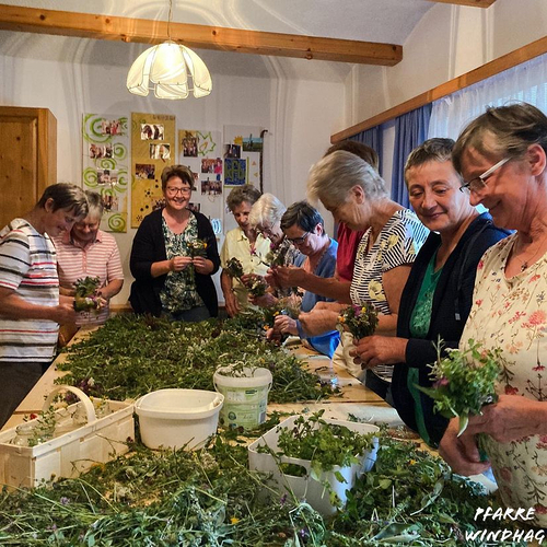 Im August treffen wir uns wieder zum Binden der Kräutersträußerl für Mariä Himmelfahrt. Dabei ist Zeit zum Plaudern und Austauschen, wie es uns beim Sammeln gegangen ist. Als Dankeschön für's Haussammeln machen wir jedes Jahr im Herbst eine kleine Wanderung mit einer Einkehr in einem Gasthaus. Das Schöne ist, dass wir da fast immer vollzählig sind. Im November treffen wir uns wieder. Da laden wir, in Zusammenarbeit mit dem Caritas-Arbeitskreis, zu einem Abend mit einem sozialen Thema ein.